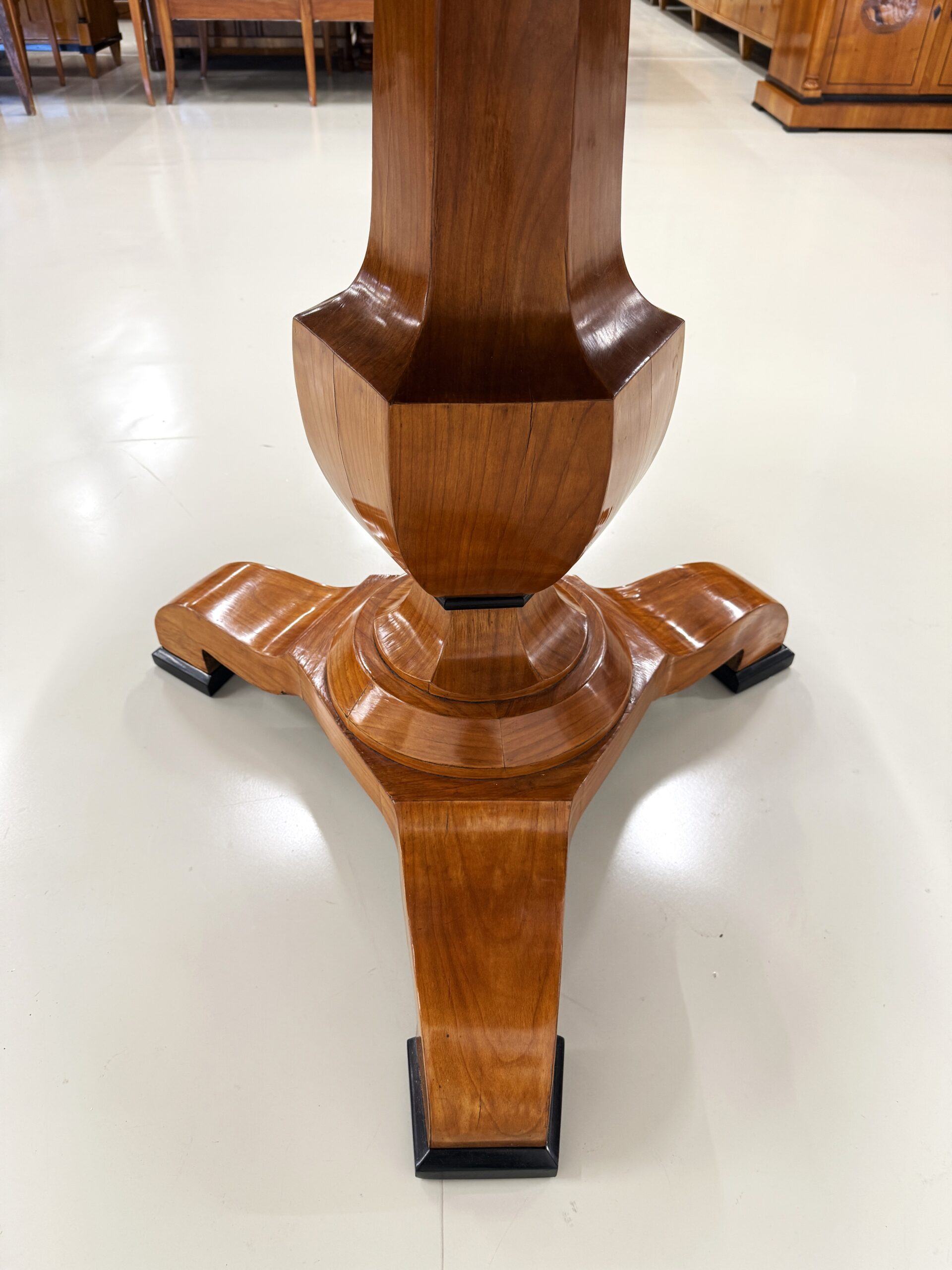 Der Mittelfuß ist aus massiver Kirsche, schön stabil und stimmig. Mit einem Durchmesser von 117 cm hat man hier auch richtig viel Platz.